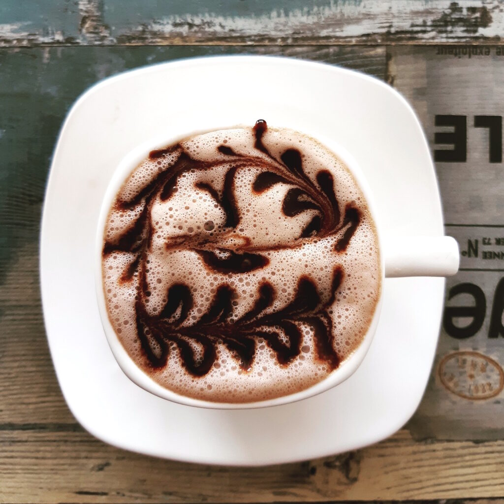 - Wenn der Kakao sich aufgelöst hat (bei manchen Sorten bleibt er leicht „klumpig“, das ist in Ordnung, ist er fertig zum Geniessen.